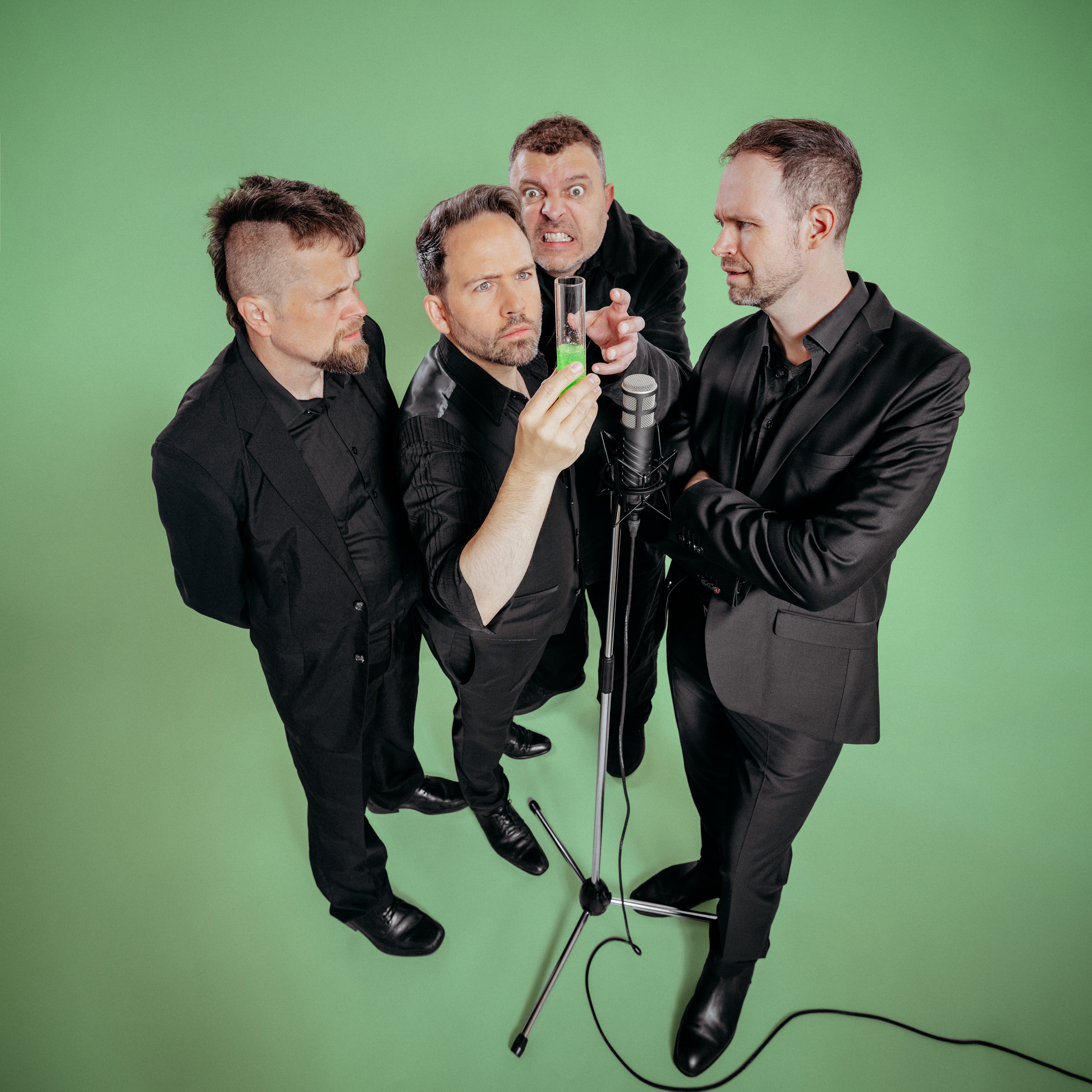 Ein Ensemble extrem wandlungsfähiger Sprecher*innen, Live-Musik und auf die Handlung abgestimmte Bilder – das sind die Zutaten, mit denen Theater ex libris Literatur als Live-Hörspiele auf die Bühne bringt.